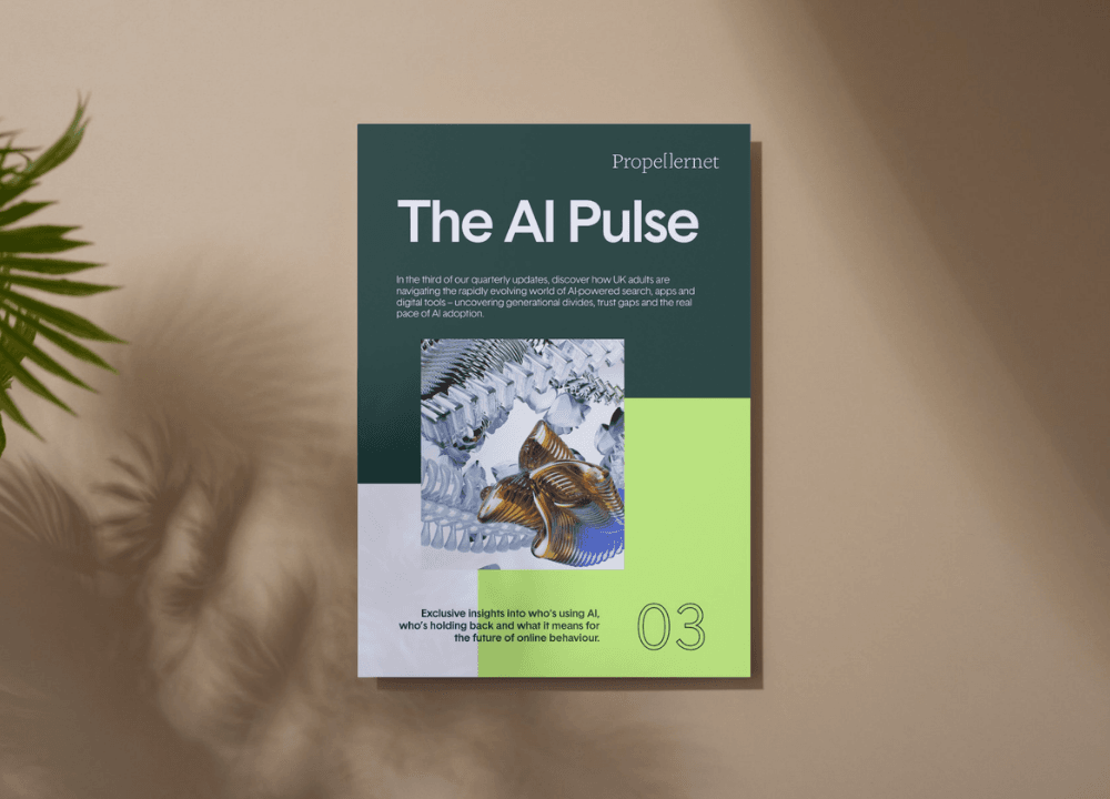 The AI Pulse is Propellernet’s nationally representative deep dive into how people across the UK are engaging with AI tools, search engines and digital platforms. Conducted in partnership with YouGov, this quarterly tracker uncovers the truth behind the hype: who’s adopting AI, who isn’t, where trust and confidence are lagging, and what it all means for the future of search, content, and digital marketing. Whether you’re navigating the rise of Google’s AI Overviews or rethinking your customer engagement strategy for an AI-influenced world, this report is your data-rich, insight-led compass.