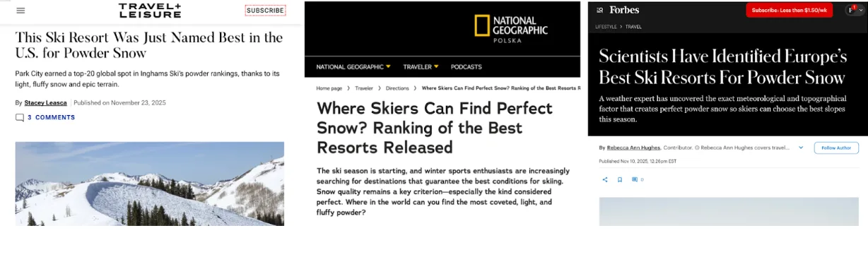 Ski travel content is crowded with subjective recommendations, reputation-led rankings and forum debate. For Inghams Ski, that created an opportunity – but also a challenge. To stand out, the campaign needed to turn a highly debated topic into something credible, useful and newsworthy. It also had to land during a short and competitive travel planning window, with enough authority to influence both media coverage and real destination consideration.